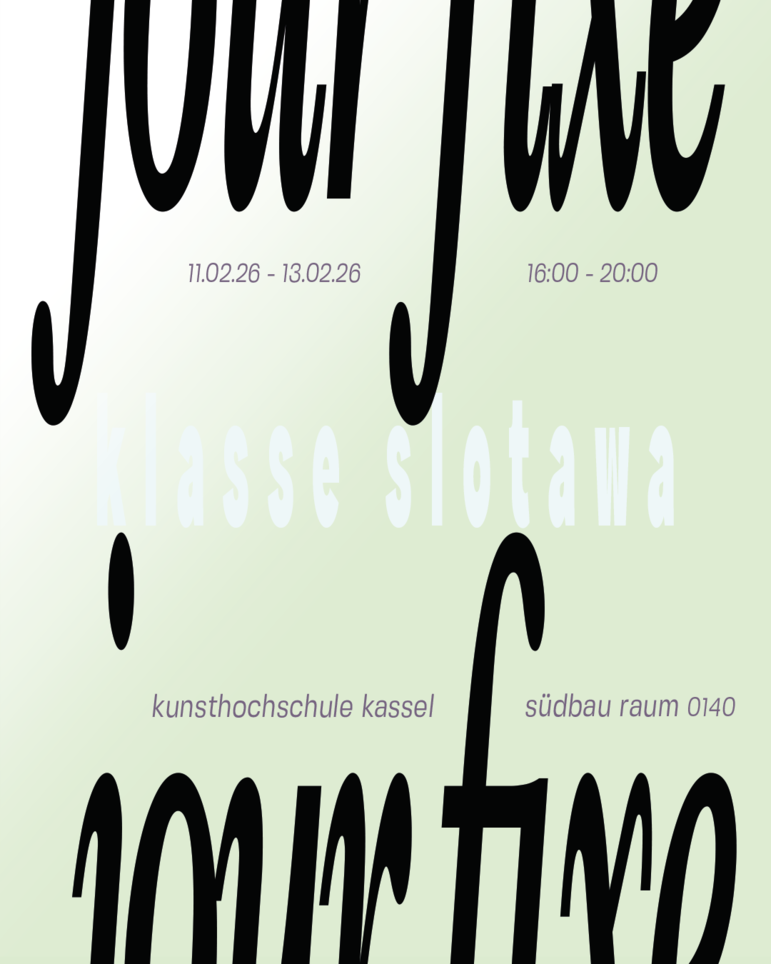 Nachdem die Klasse Slotawa (Kunsthochschule Kassel) im letzten Jahr die Halle 14 auf dem Spinnereigelände in Leipzig bespielt hat, zeigt sie nun in den eigenen Räumen (Eingang C im Südbau) aktuelle Arbeiten aus dem Wintersemester 2025/26.