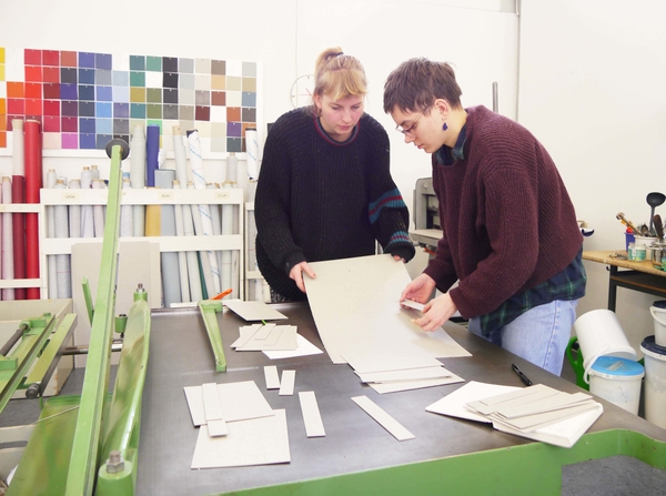 In der Studienwerkstatt Buch und Papier können Studentinnen und Studenten die traditionellen künstlerischen Techniken der Papier- und Bucheinbandgestaltung kennenlernen. Hierzu bieten wir fachübergreifende Lehrveranstaltungen für die künstlerischen Studiengänge an: